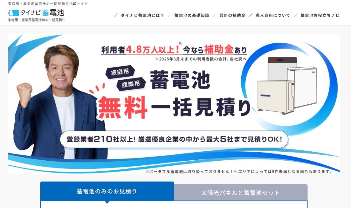 タイナビ蓄電池は、自社で販売・施工を行うのではなく、蓄電池の設置を検討しているユーザーと、全国の優良な販売・施工会社とをマッチングさせる、無料の一括見積もりサービスです。