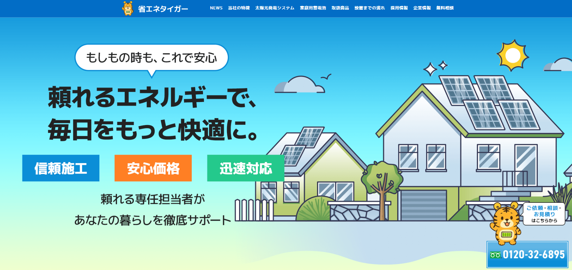 省エネタイガーは、太陽光発電や蓄電池の導入を通じて、家庭のエネルギー自給率向上を支援しています。